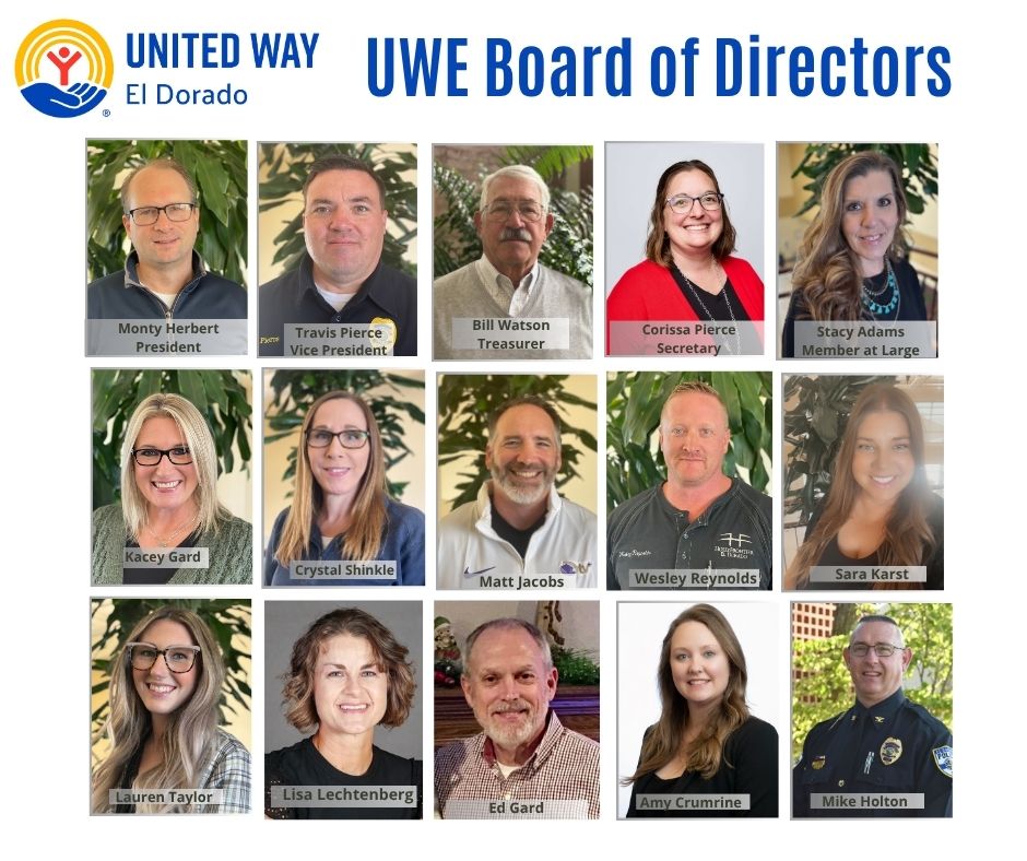 The Board of Directors is ultimately accountable for the United Way of El Dorado's performance, reputation, and stature in the community. Through excellence in organizational leadership and governance, United Way is a mission- driven organization, Where staff and volunteers are passionate, focused, and aligned to achieve goals. The volunteer board of directors is effective in setting direction for the organization, ensuring necessary resources are available, and providing oversight of programs, finances,legal compliance and values.